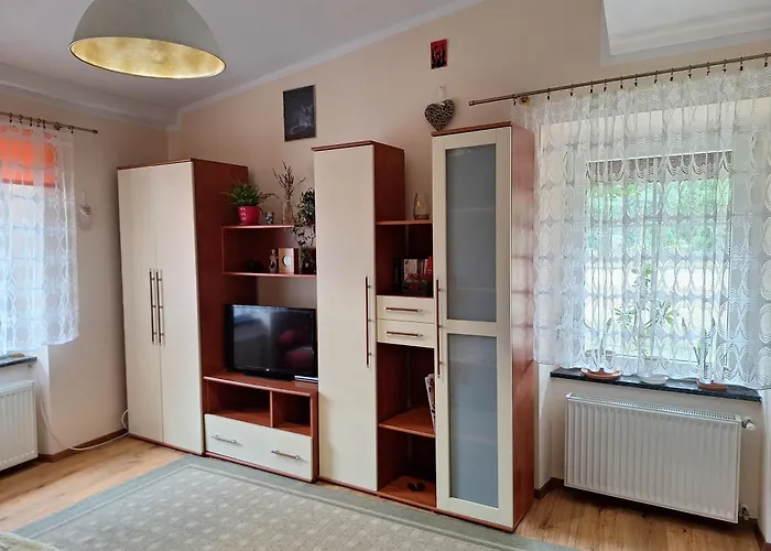 Krysztalowe Zacisze с видом на сад расположены на расстоянии 3 км от Чиботека. В апартаментах предоставляются гладильные принадлежности, а также стиральная машина.